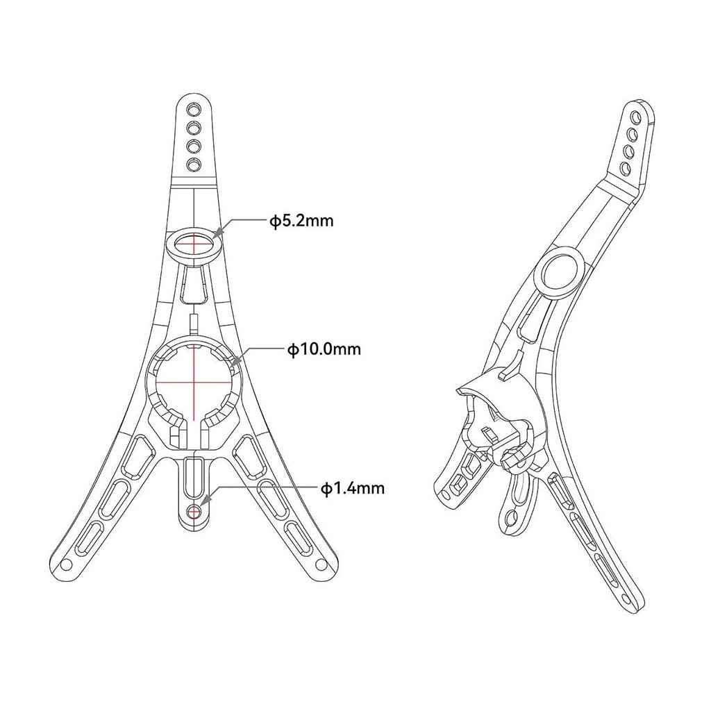 - Zadní část nabízí čtyři montážní pozice a umožňuje nastavení úhlu kamery v rozmezí 25°–50°, přičemž nechybí ani otvor pro lineární anténu. Ideální volba pro stavbu ultralehkých a zároveň univerzálních whoopů.