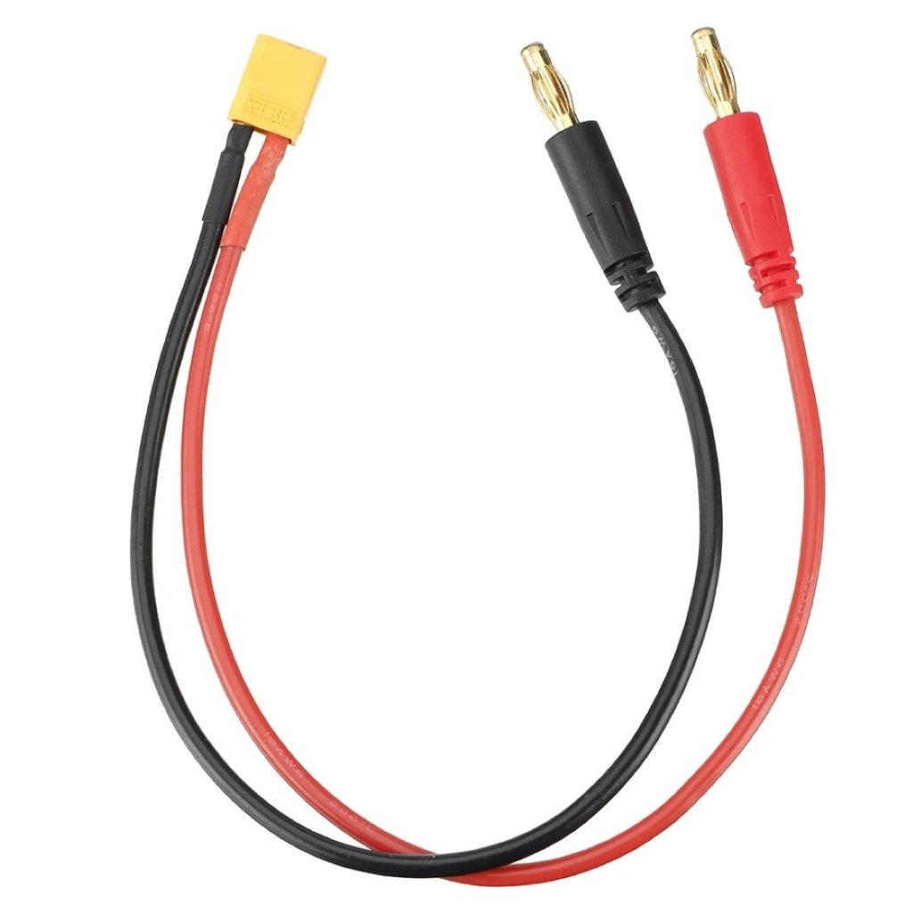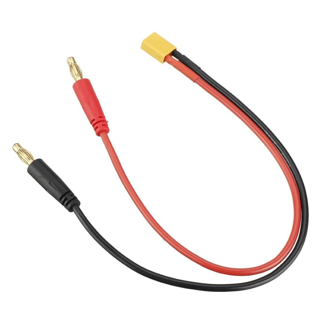 - 1x Nabíjecí 20cm kabel tloušťky 14AWG s konektorem XT30 MALE na 4.0mm banánky