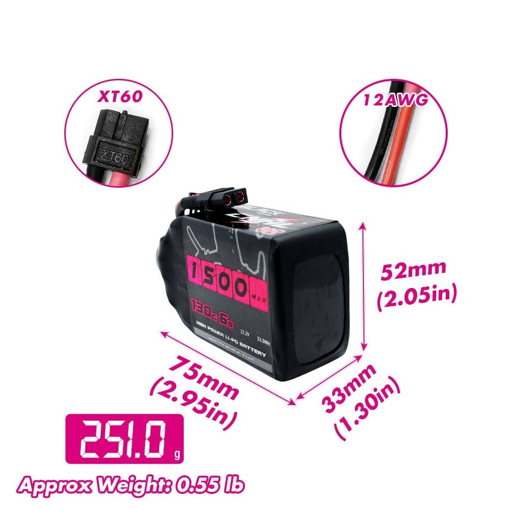 Baterie Ministar 1500mAh 6S je vhodná pro 5-7" koptéry. Baterii oceníte především, pokud potřebujete udělat kompromis mezi hmotnostní a letovým časem