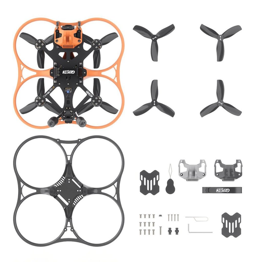 - Dron je dále vybaven Geprc PDB modulem, který integruje držák přijímače, pípák, BEC pro LED osvětlení, ochrannou TVS diodu a anti-spark ochranu.