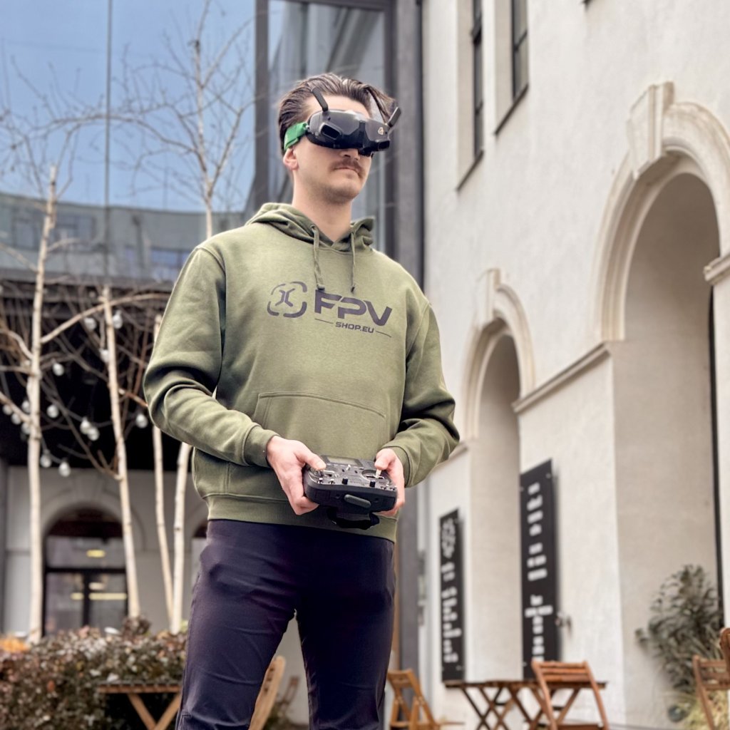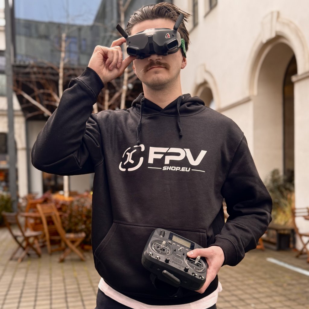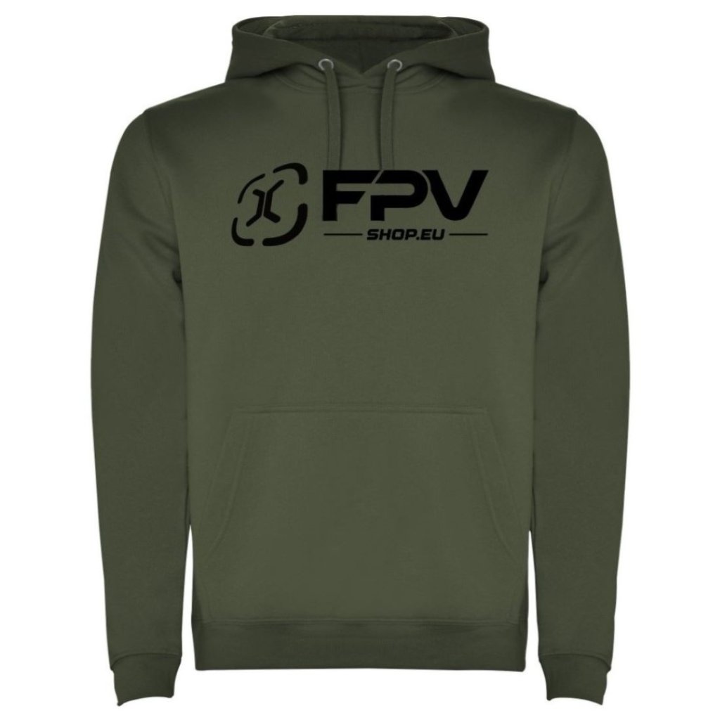 Mikina s kapucí FPVshop.eu v různých barvách. Ideální pro milovníky dronů s potiskem na přední straně a klokaní kapsou. Materiál 50% bavlna a 50% polyester.