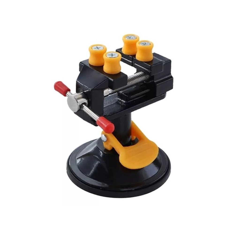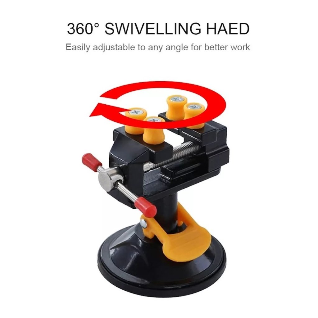 - Přísavná základna umožňuje snadnou instalaci na jakýkoli hladký povrch bez nutnosti šroubování. Svěrák je vybaven otočnou hlavou o 360° pro maximální flexibilitu při práci.