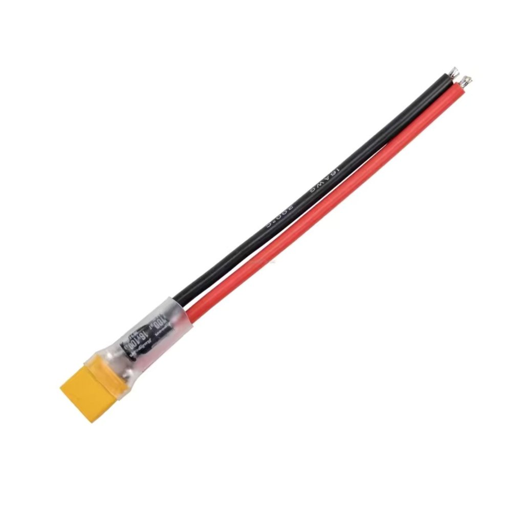 Konektor XT30U MALE s kabeláží a kondenzátorem (AMASS) - 18AWG 100µF 10cm