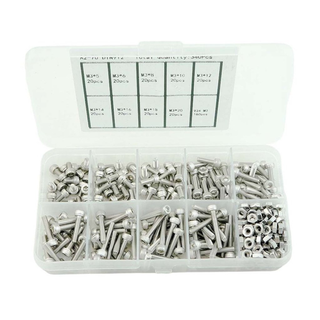 Sada šroubů a matek M3 (340 ks) - Imbus válcová hlava